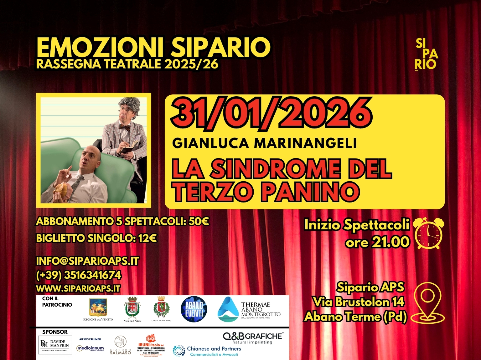 LA SINDROME DEL TERZO PANINO – Gianluca Marinangeli – Rassegna Teatrale Emozioni Sipario